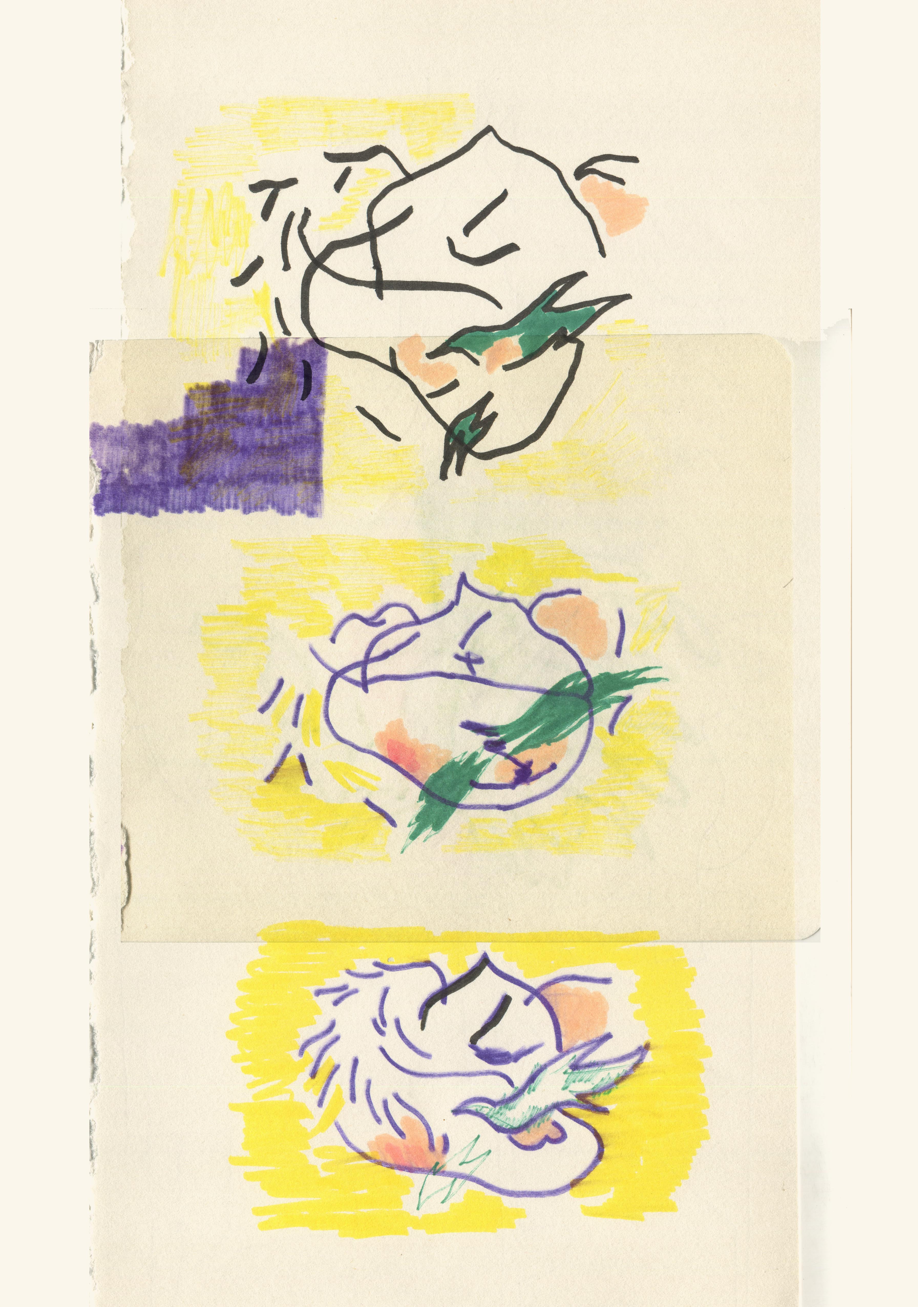 III Formes ouvertes 05 [écriture] Notes et pensées, 2020-… [poésie] Prépositions, De l’espace, février 2020 - [poésie] Éclats, De l’âme, février 2020 / 04 [son] Mélodie 01, Mercredi des Cendres, 1 min 36, mars 2020, Saint-Étienne - [son] Déambulation 01, Rhizome, 1 min 46, décembre 2019, Saint-Étienne / 03 [image] Visuels pour Pryapisme (formation musicale de Clermont-Ferrand), 2015-2018 / 02 [interactivité] Essais sur le mouvement, 2011, Chaumont / 01 [image] Carnets et feuilles volantes, 2019-… / II Capture 04 [lecture] Collectes mars 2020, extraits sur l’âme, la beauté et le sens du faire / 03 [photographie] Prises de vue, 2016-2019 / 02 [vidéo] Motifs, 3 min 47, 2016-2019 / 01 [son] Captures, I Métro Paris, jeu. 02.05.2019 à 12.30, 2 min 51, 2019 - II Violons Montreuil, 17.02.2018 à 20.30, 1 min 46, 2018 / I Méditations 05 [son] méditation 02, Le Grand Bain, 3 min 46, février 2020, Saint-Étienne / 04 [son] méditation 01, Équinoxe, 5 min 28, novembre 2019, Saint-Étienne / 03 [image] image 02, série Ressources, octobre 2019, marqueurs, 458 x 648 mm, Saint-Étienne / 02 [image] image 01, série Ressources, septembre 2019, marqueurs, 458 x 648 mm, Saint-Étienne / 01 [image] Écrans, septembre 2019, marqueurs, 670 x 600 mm, Saint-Étienne